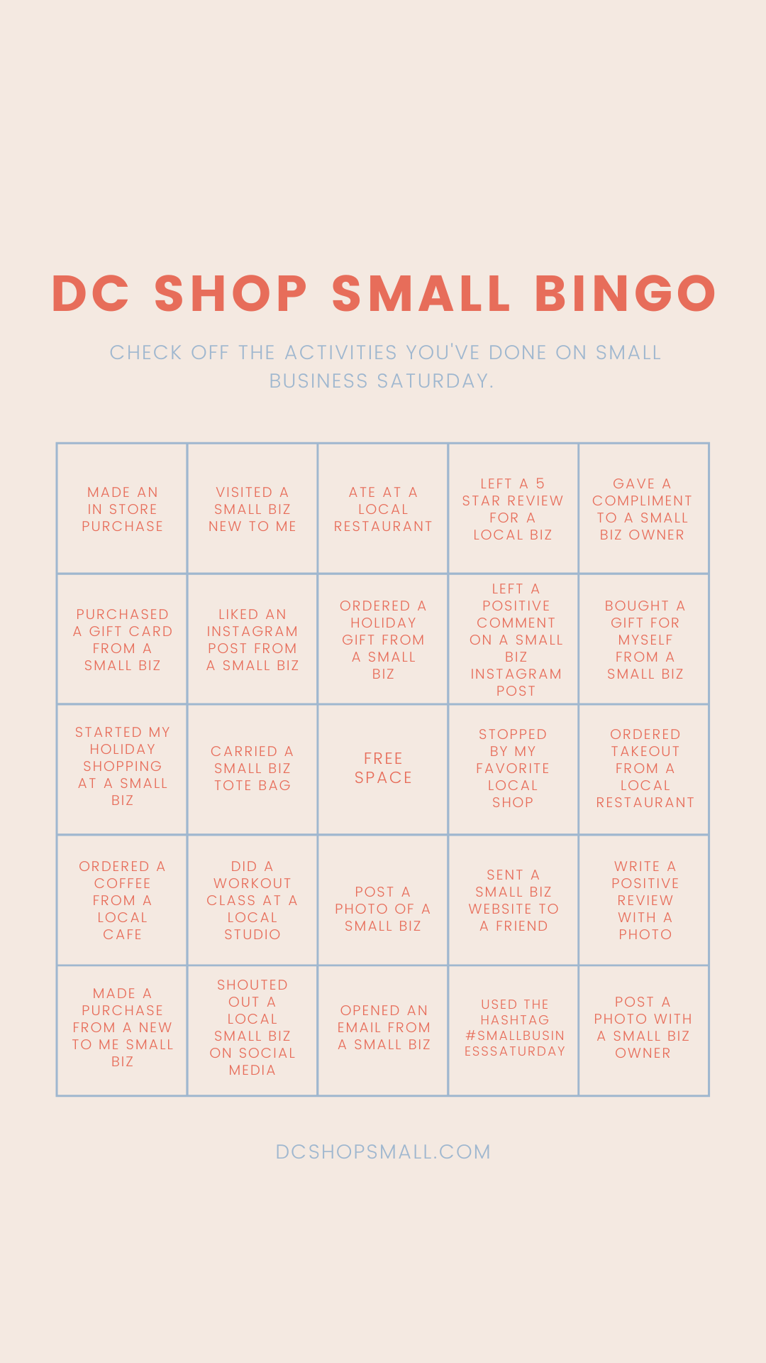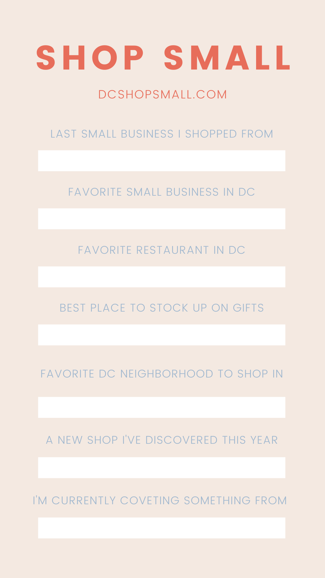Spread the word that you're shopping small this year! Use the below graphics on social media, and be sure to tag @dcshopsmall.